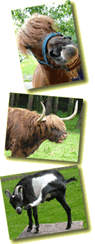 As well as the rare breed farm animals, there is a variety of fancy birds, peacocks, pheasants, waterfowl, ponies, llamas, wallabies, muntjac deer, chipmunks, ferrrets, and other pets. You must come and see our miniature Guinea Pig Village with it's own church, pub and windmill! Check out the photo gallery for pictures of the many characters, some human, at The Animal Ark.